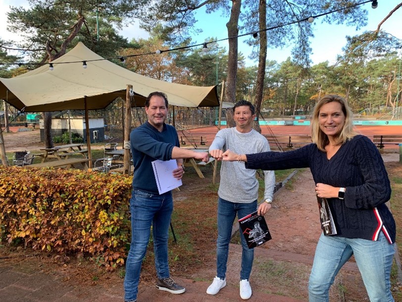 Op de foto: Ivo Willems, Carlo Persijn (TennisDirect) en Ellen Julius maken de deal officieel: